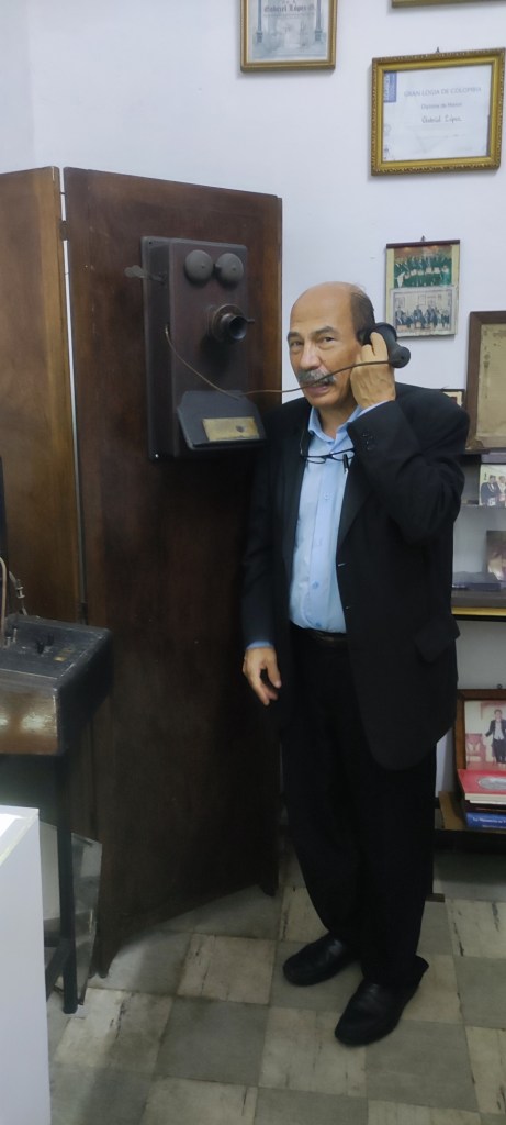 Otras de las visitas importantes al Salón de las Telecomunicaciones fue la del Presidente del Colegio de Economistas del Dtto. Capital y del Estado Miranda Econ Francisco Chirinos y del Director del Colegio de Contadores Públicos de Caracas Lic. Simón Miranda, quienes disfrutaron hablando desde teléfonos de principios del Siglo XX. La visita fue guiada por Hildemar López González, junto con Sixto López González …que tal!!!