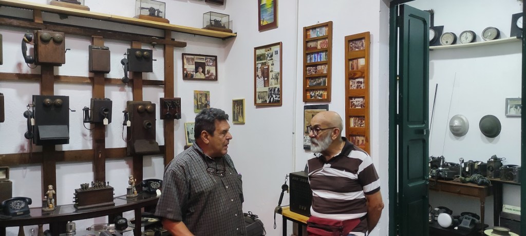 El amigo Victor Zambarno Díaz en amena conversación con Sixto López, sobre los emprendimientos en la Parroquia La Pastota y su potencial de desarrollo, en el Salón Morce de la Colección APA.